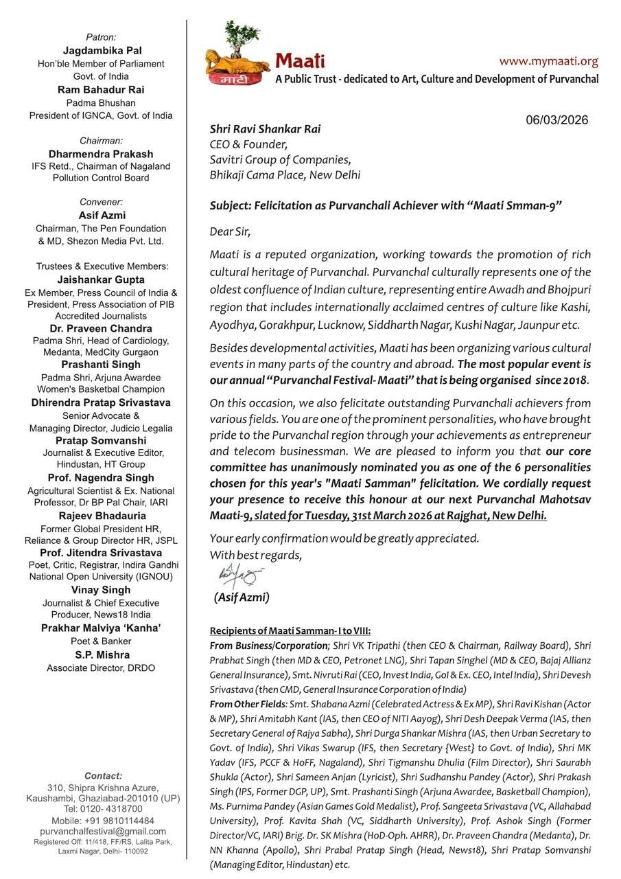 The vibrant spirit of Purvanchal came alive at Purvanchal Mahotsav – MAATI 9, held on 31st March 2026 in Delhi, celebrating culture, heritage, and community pride.